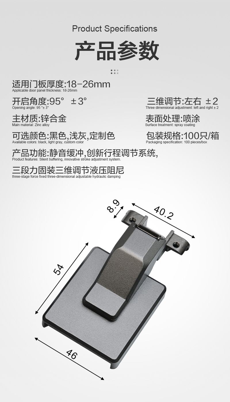 ZDY-40-C1双缸液压暗藏合页 缓冲静音定位 可调木门
